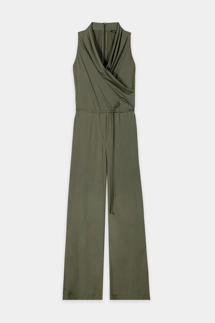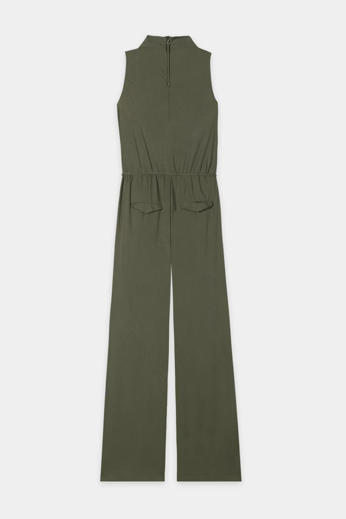 Elastyczny kombinezon bez rękawów wykonany z technicznego dżerseju z głębokim dekoltem w kształcie litery V i wąskim paskiem w talii. Z tyłu znajduje się długi zamek błyskawiczny ułatwiający ubieranie i rozbieranie.