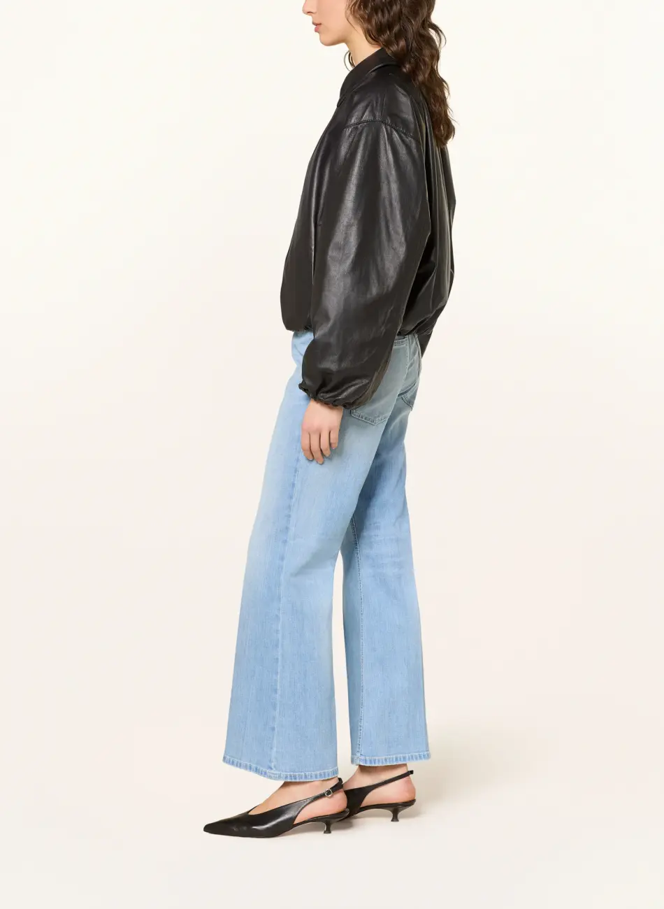 Jeansy Fabienne pocket cropped o klasycznym, normalnym stanie z modnie rozszerzanymi nogawkami, które pięknie wydłużają sylwetkę. Wykonane z bawełny z dodatkiem elastycznego denimu, zapewniają wygodę i dopasowanie przez cały dzień. Model posiada szlufki, zapięcie na zamek błyskawiczny oraz funkcjonalne kieszenie – tylne i małą kieszonkę. Styl podkreślają detale z logo oraz naszywka na pasie. Efekt sprania i optyczne zagniecenia nadają jeansom modny, lekko vintage’owy charakter, idealny do codziennych stylizacji.