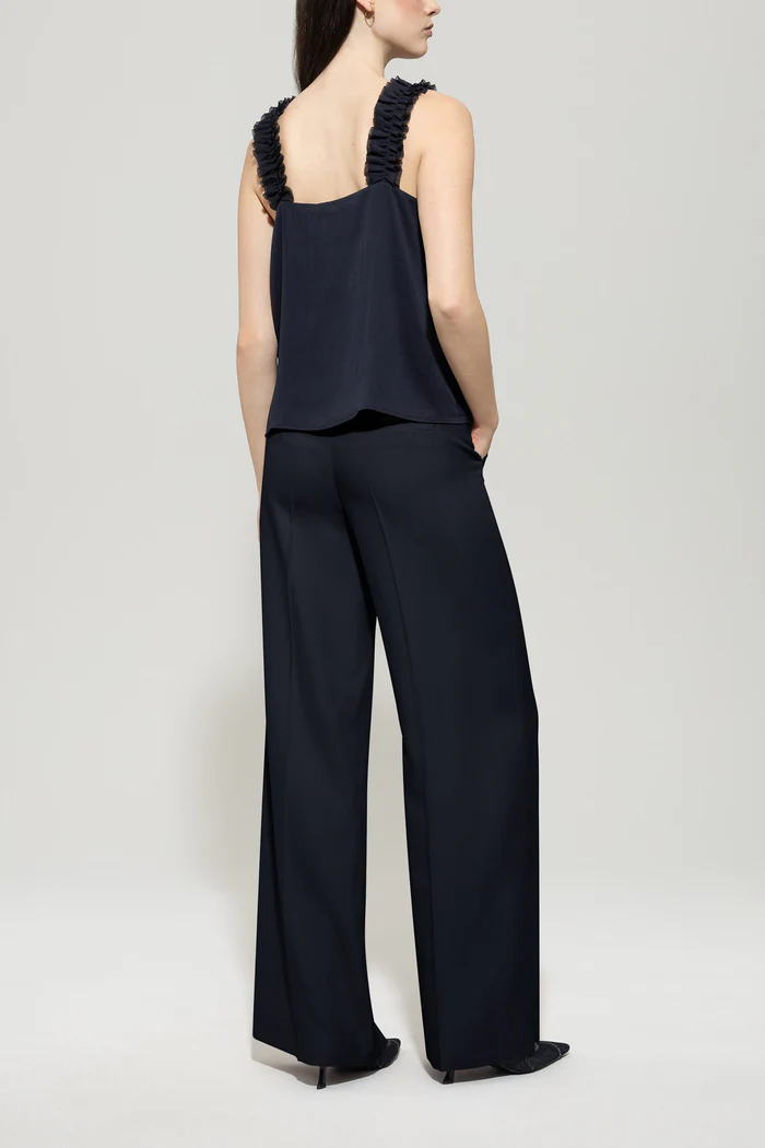 Spodnie Luisa Cerano z szerokimi nogawkami wykonane z miękko drapowanego gabardynowego materiału. Spodnie mają szlufki na pasek, boczne kieszenie i wskazane kieszenie z tyłu.