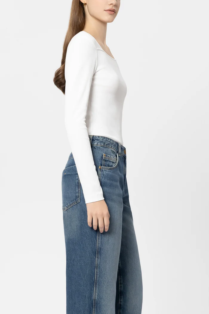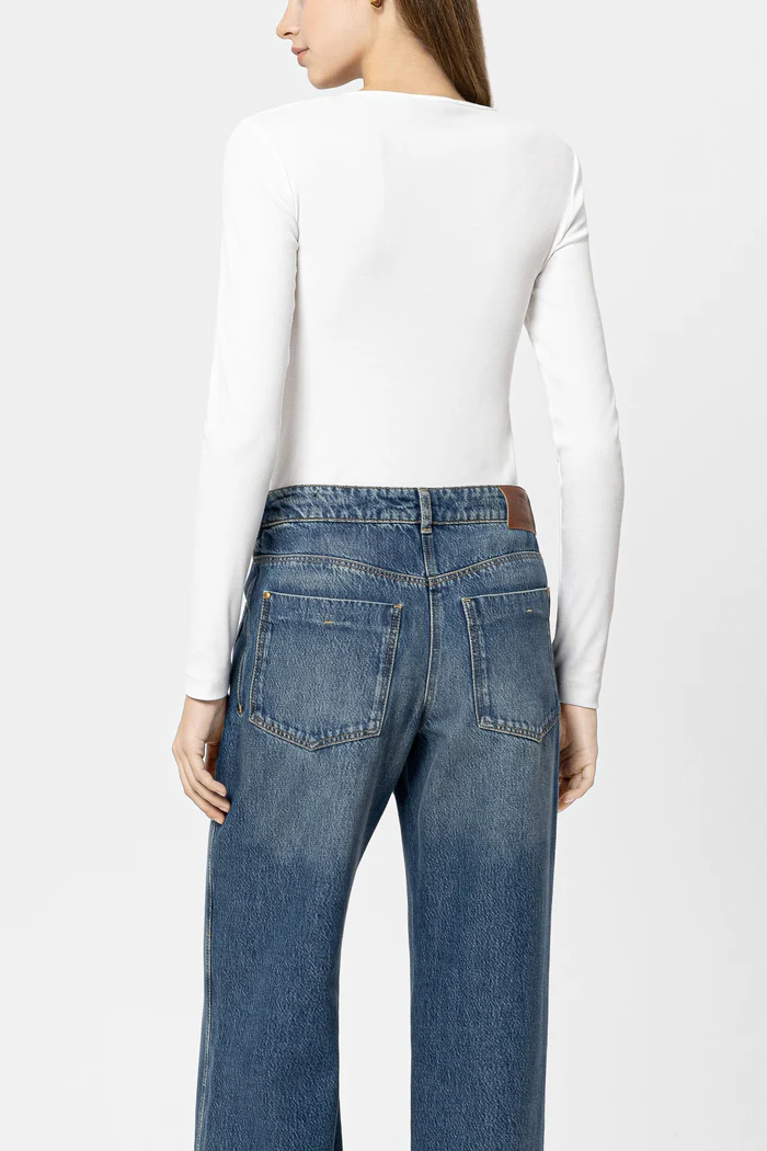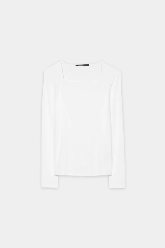Prążkowana koszulka Luisa Cerano z długim rękawem wykonana z elastycznej bawełny z kwadratowym dekoltem i subtelnymi przeszyciami. Z przodu znajduje się małe, subtelne haftowane logo.