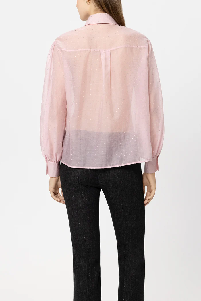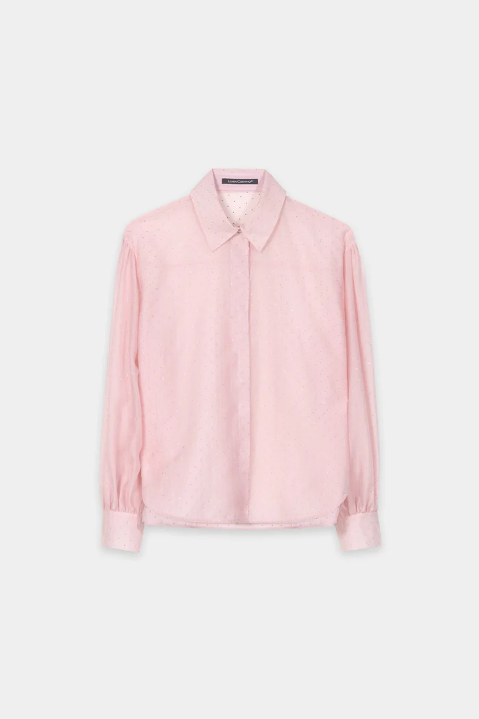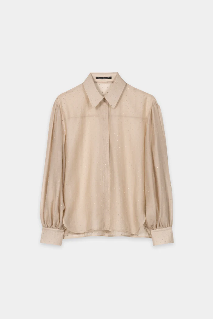Delikatnie prześwitująca bluzka Luisa Cerano wykonana z mieszanki lyocellu z eleganckim połyskującym wykończeniem z błyszczących kamieni i ukrytym zapięciem na guziki. Plisa z tyłu i rozcięcie z boku zapewniają swobodny krój.