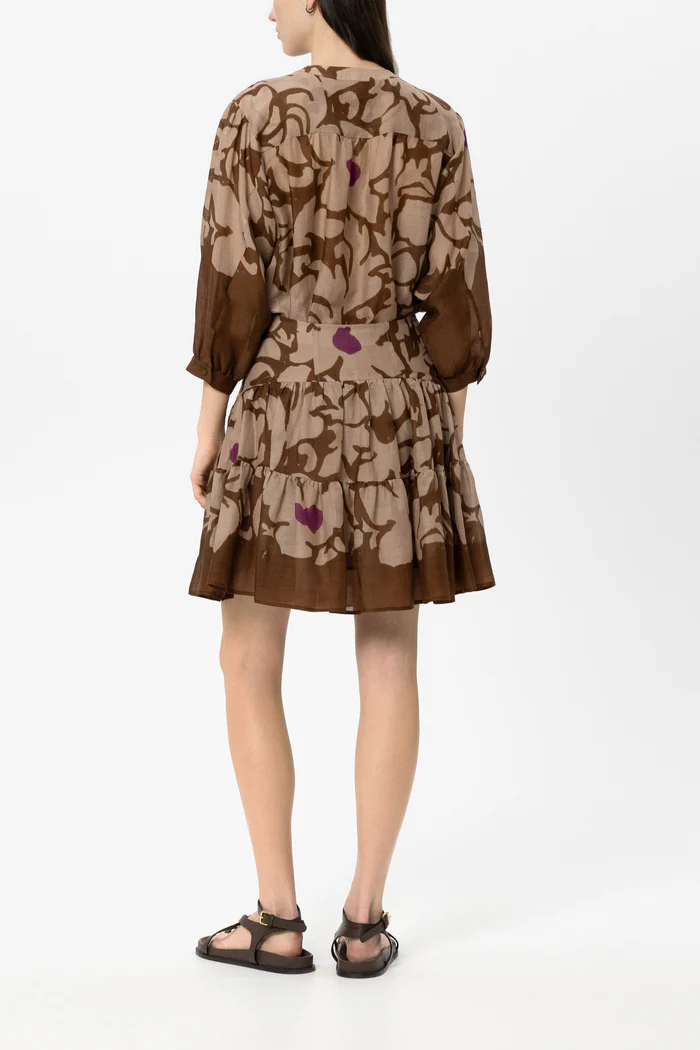 Mini spódniczka na podszewce wykonana z mieszanki lyocellu i ramii z ekskluzywnym, ozdobnym kwiatowym wzorem. Rozkloszowana spódnica jest wiązana z falbanami i ma szeroki pas.