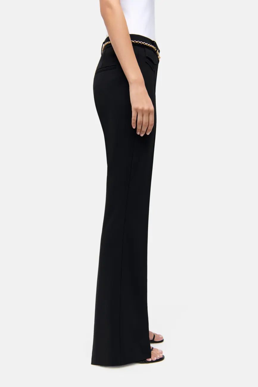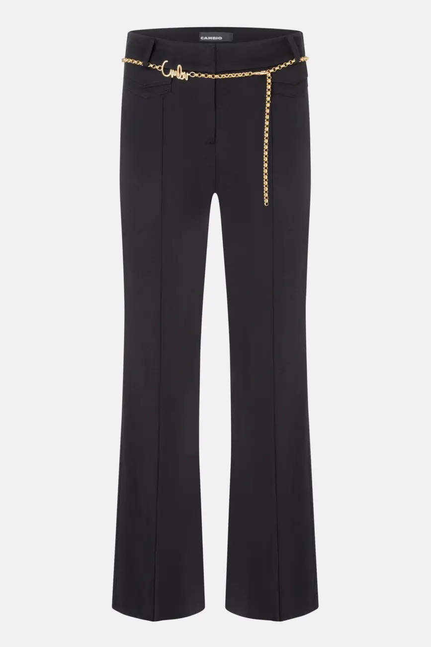 Spodnie Cambio FAWN Flap pocket. Wykonane z miękkiej tkaniny Punto-Milano z włókien wiskozy i lycry. Naszyte z przodu kieszenie oraz starannie wykonane, podłużnie biegnące przeszycie. Szczególną atrakcją jest złoty pasek ozdobny z logo CAMBIO.