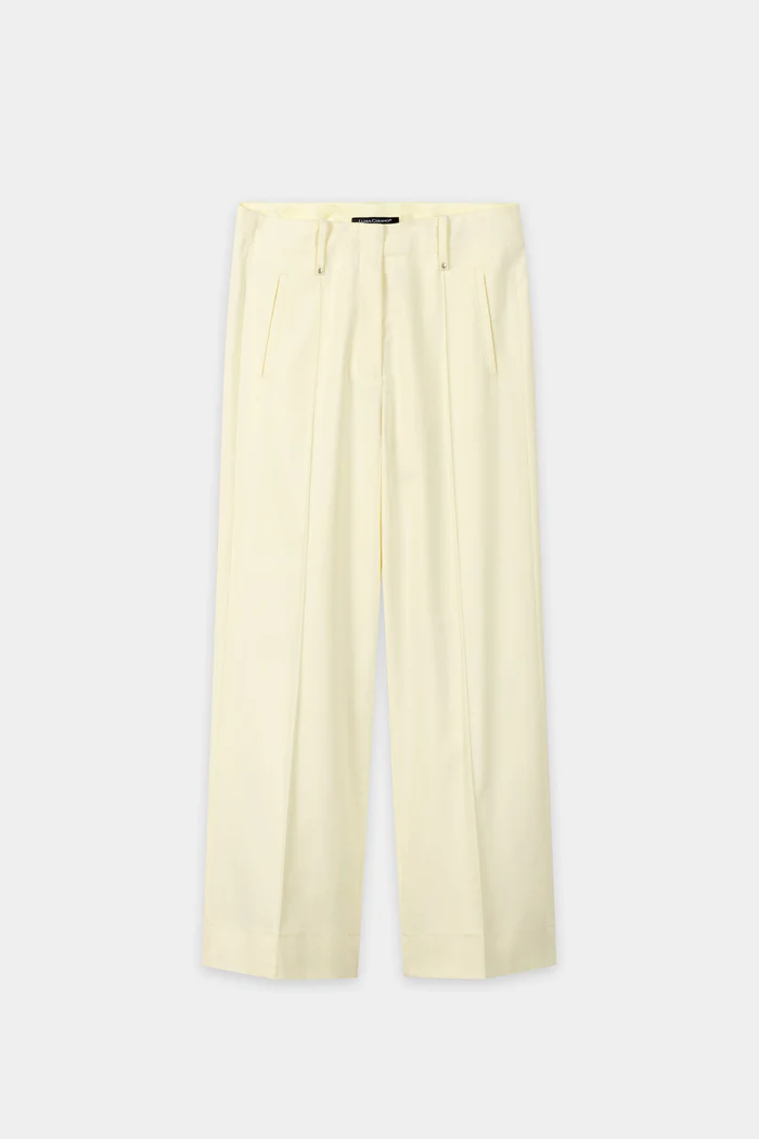Luźne spodnie z lekko przyciętą nogawką wykonane z miękkiej, elastycznej wiskozy bawełnianej. Spodnie mają szlufki na pasek z ćwiekami, dwie wskazane kieszenie z przodu i dwie naszywane kieszenie z tyłu.