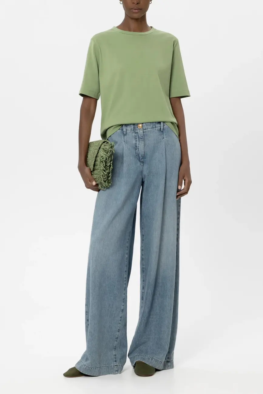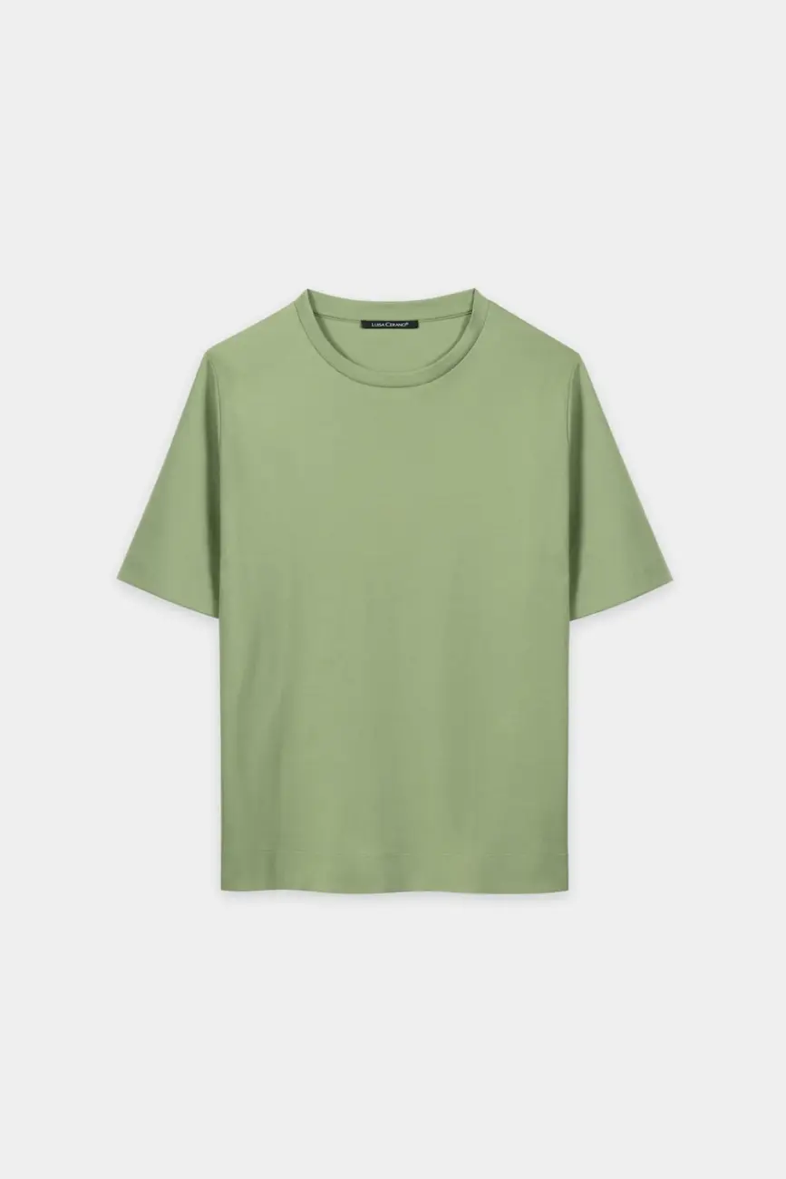 Klasyczny T-shirt Luisa Cerano z bawełny organicznej o prostym kroju, z okrągłym dekoltem i półrękawkami. Szerokie przeszycia podkreślają swobodny styl.